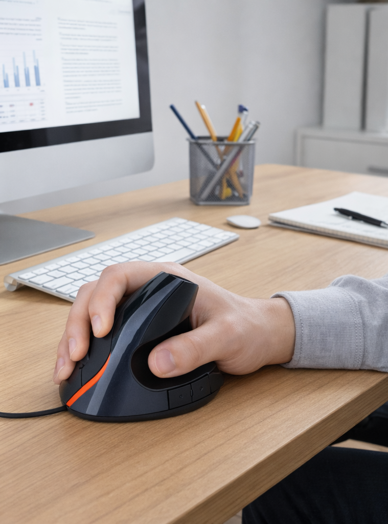 Si buscas un equipo que combine ergonomía, funcionalidad y durabilidad, el Mouse vertical ergonómico con conexión USB es la opción perfecta. Optimiza tus jornadas frente a la pantalla y protege tu salud con un dispositivo pensado en ti.